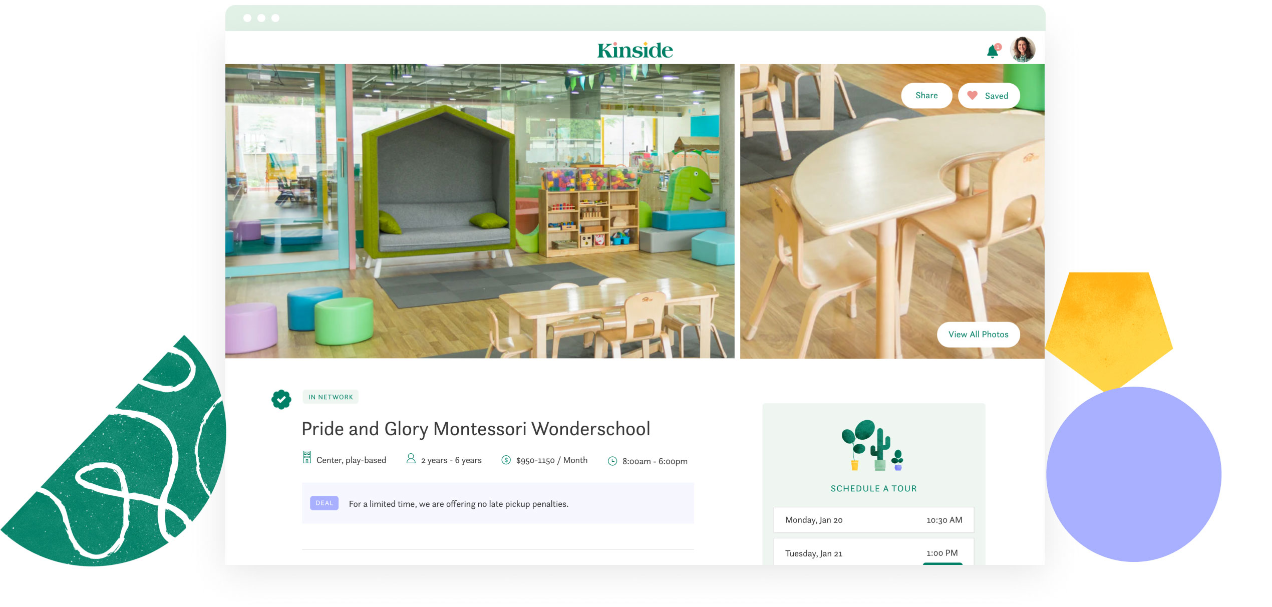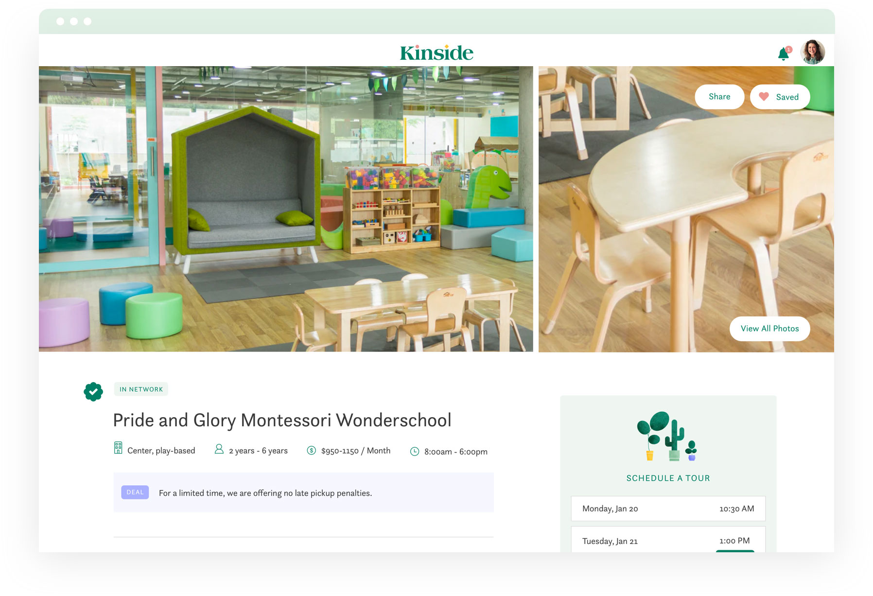 Whether you're searching for an open infant spot, a Montessori preschool with extended hours or a preschool within walking distance for your toddler, Kinside has you covered.